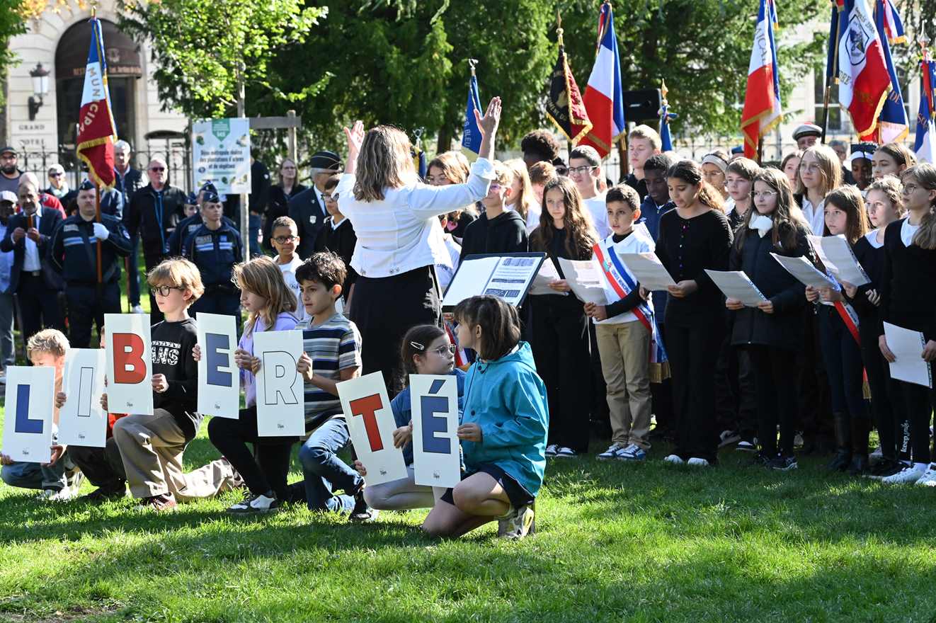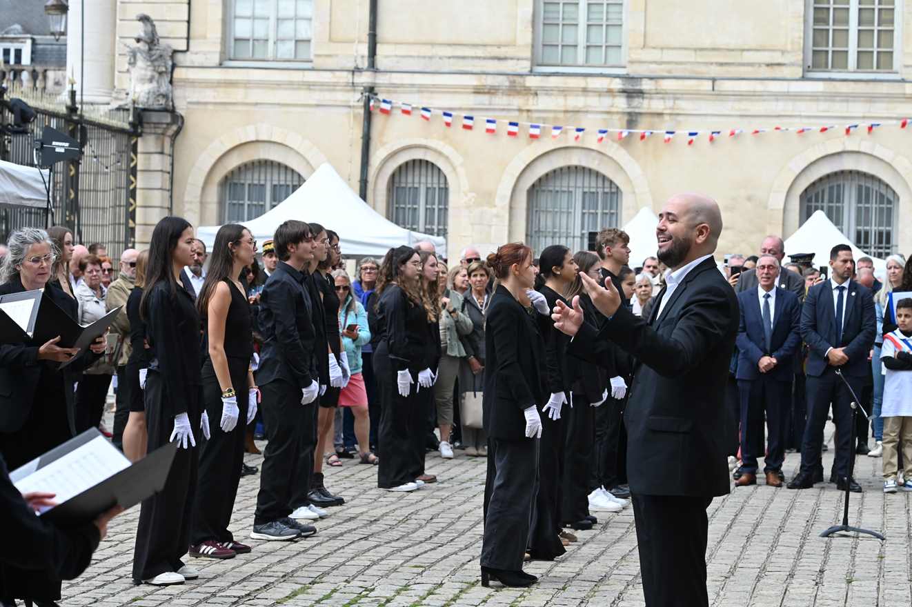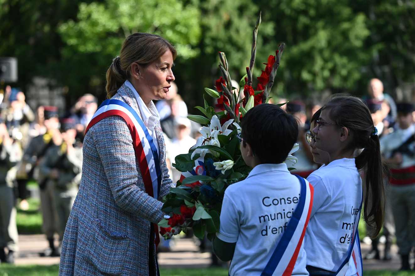 Dépôt de gerbe, notre Compagnon Nathalie Koenders, maire de Dijon